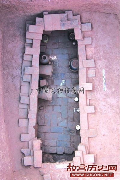 M6为长梯形多龛砖室墓,由墓道、墓门、甬道及墓室等几部分组成,通长约6.18米。墓道为长方形竖穴式土坑,开口长1.9米、宽1米、深3~3.3米。墓道底呈前高后低的斜坡状,前端有一高约1.4米、宽约0.2米的窄生土台,左右两壁前端自上而下共分布脚窝5个。墓道后端接长方形土圹,墓门、甬道及墓室在土圹内砖砌。墓门呈拱形,直壁券顶,内宽0.82米、内高1.18米。封门由砖、石、土坯等杂乱混砌。甬道为直壁券顶,底平坦,未铺砖,低于墓室底铺砖约6厘米。甬道长0.7米、内宽0.82米、内高1.18米。甬道券顶上前端错缝平砌一排砖墙。墓室平面呈长梯形,前宽1.16米、后宽1.04米、中长3.2米,室内通高约1.38米。墓室底错缝平铺一层条砖。室墙为直壁,条砖错缝平砌。室内共发现砖砌壁龛11个,各龛龛底铺砖,与室底铺砖齐平。后壁中部龛为主龛,最大,编为1号龛,直壁,叠涩内收成平顶。左右两长壁各有5个龛,自后往前分别编号为2号~6号和7号~11号龛,形制大小相近,为直壁内收成平顶。室顶自左右两长壁顶起用条砖橫纵交替向上叠涩内收而成,顶层用两排甃立条砖,一高一低相错封顶,在顶部形成一内凹的中轴线。室顶因受力不均已发生变形,前半部还有大面积浇白灰现象,应起加固作用。墓室内所葬人骨至少有15具,均保存很差,缺损严重。除6号龛内散置的零星人骨不明个体数且无葬具外,其余确定个体数的14具人骨均以大瓷罐、大陶罐或陶棺作为葬具,其中11具为火葬,3具为二次葬。可鉴定的人骨有10具,性别有男有女,年龄有中年、青壮年和幼年。葬具除8号龛陶棺内葬一男一女2具人骨外,其余均放置一具人骨。葬具内大多随葬有带盖瓷钵。葬具放置以龛为单位,位于龛内、龛口或龛口旁,每龛有单人葬、双人葬或三人葬。10号龛和11号龛为空龛,尚未来得及下葬。综合葬式、人骨鉴定初步结果分析,墓室内的壁龛应是相对独立的埋葬单位,M6是一墓多龛,亦可以说是一墓多室。从发掘情况看,该墓所有人骨应非一次迁葬,墓室应经过多次开启。此外,该墓内所葬人骨多为火葬,前述M7和M12内所葬人骨亦有火葬者,推测此三座金元时期砖墓遗存可能与佛教信仰有关。