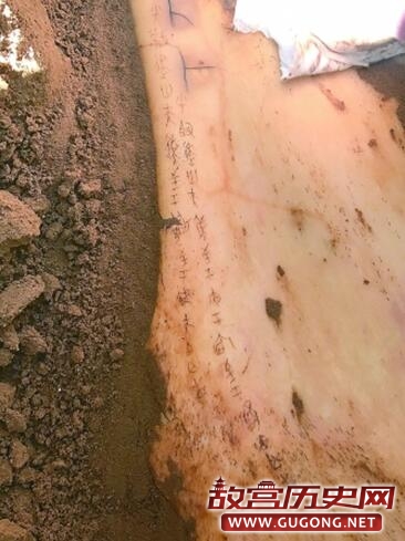 甲字形墓葬M13墓道填土中出土的有字卜骨。资料图片