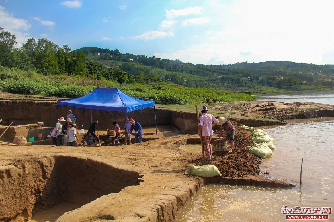 坪上遗址江水上涨构筑防水堤坝