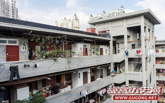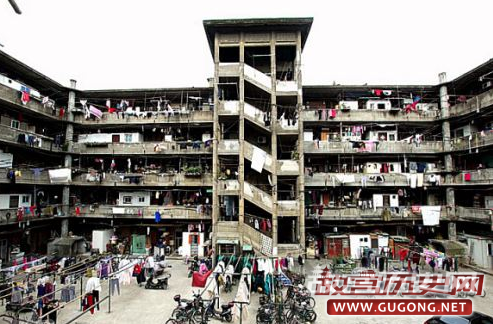 整个公寓是一座口字形建筑,五层的楼房团团围着中间的大院。每层楼房有一条长长的公用楼道相通,楼道后就是大小不等如蜗居般的房间,看上去很旧很乱,但不脏。