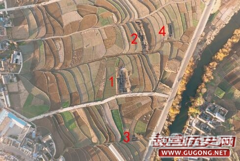 房址发现6座,第一活动面上1座(1号房址),保存较差,为地面开挖基槽,基槽内有小柱洞,可能是木骨泥墙的建筑形式;第三活动面5座,2座为半地穴式(2、5号房址),3座为平地起建形式(3、4、6号房址)。2号房址保存较好,系先在地面开挖椭圆形坑,然后用火烧烤坑面,再于其上铺垫一层黄土,筑造考究。第四活动面上有数量极多的柱洞,但难以确认为房屋建筑。