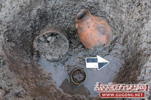 一个值得注意的现象是,在第二、第四活动面上,开口有若干小坑,直径约30—45厘米,里面往往放置1件完整陶器,有的伴出有机质串珠、陶纺轮和青铜手镯,如38、60号灰坑。67号灰坑出土2件陶器,另有3件青铜手镯。