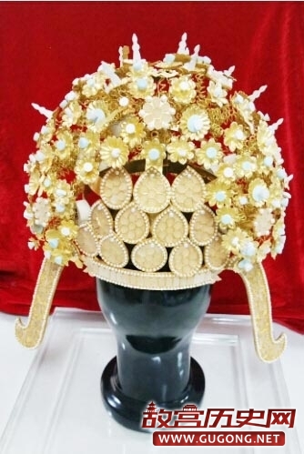 和深埋地下千年的真版萧后冠不同,历经半年制作完成的萧后冠仿制品则十分华美。据介绍,萧后冠上有13棵花树、166片铜花瓣、12片水滴形头饰,尽显皇家气派。专家表示,仿制冠的花瓣、花蕊、花茎,以及其他材质,都与萧后冠的材料完全相同。