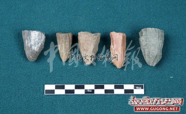 遗物 铜鼎山四麻沟遗址发掘出土遗物数量相对较少,主要出土在第④层土与房址内的填土中。共出土器物1300余件,其中大部分为石制品,较少量的陶器残片及骨器。此外,还出土了大量的残碎兽骨。石器,石制品原料以灰黑色硅质岩占多数,砂岩次之,还有少量的玛瑙、燧石、石英石等。出土石器多数为打制石器,极少量的磨制石器,个别石器为局部磨制。器形有石铲、石斧、石锛、砍砸器、锛形器、矛形器、刮削器、磨盘、磨棒、磨石、石核、石叶、饰件等。此外,还出土有大量的石制品剥片。陶器,出土可复原器形极少,多为较小的陶器残片。主要为夹砂黑褐陶、夹砂黄褐陶和泥质黄褐陶,质地疏松,火候低。纹饰有麻点纹、编织纹,还有数量较多的素面。制法为泥片贴筑法。器形简单,出土有釜、筒形罐、敞口小底罐、片状器、纺轮、饰件等。片状器为椭圆形或方圆形,素面。骨器,出土有骨锤、骨铲、骨锥、骨针、骨饰片等。此外,在部分房址内,较为集中的出土了数量不等的动物骨胳和少量蚌壳。