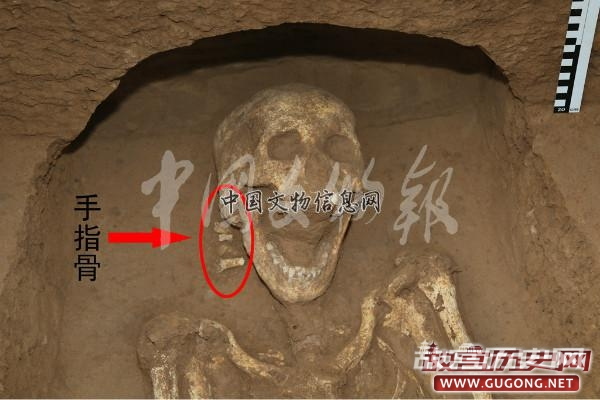 墓葬均为单人一次葬,墓主骨骼保存较为完整,个别墓葬墓主人的臂部、腿部有缺失现象,还有少量非正常死亡现象,M151墓主人的颈部插有骨簪,应是致死原因。人骨保存状况一般,尤其以肋骨、脊椎及手、脚部等,以及股骨头、胫骨头等多孔隙骨骼腐朽较为严重,有的仅能根据残存的朽痕清理出大致轮廓。葬式均为仰身直肢,头朝西,面向上,双臂贴近躯干摆放,足部大多并拢,明显不同于人死亡后双脚呈“八”字状自然分列排布的情况。在发掘过程中,相当数量的墓葬中发现有手指骨移位的现象,有的指骨填埋在墓道内或散乱在人骨周边,有些摆放在头骨附近或骨盆内,有的手骨与尺骨自腕部整体分离约20厘米。