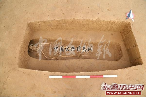 在已完成发掘的墓葬内尚未发现有木质葬具,个别墓葬中人骨周围发现了疑似编织物包裹的痕迹。