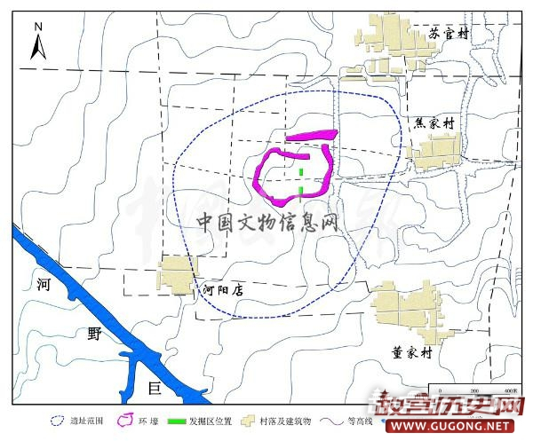 遗址分布范围及壕沟位置图