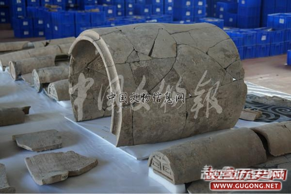 在三号古城试掘中,出土了大量内饰麻点外饰细绳纹、中绳纹的筒瓦、弧形板瓦、槽型板瓦,和素面瓦当、动物纹瓦当、云纹瓦当等建筑材料,其时代特征明显,与秦雍城、秦咸阳城、秦汉上林苑、汉长安城遗址同类遗物形制、纹饰相近,显示其上承雍城,下接秦咸阳,并延续到西汉前期。在清理中不仅出土可拼对基本完整的长73、最大径63厘米的巨型筒瓦,还发现多个与辽宁碣石宫遗址B型大瓦当纹饰相近的瓦当残片。