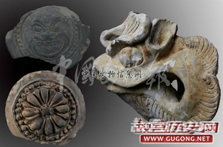 建筑构件 发现的建筑构件主要属于唐、五代、宋金时期,包括莲花纹瓦当、兽面纹瓦当、筒瓦(其中有青掍瓦)、板瓦、龙形建筑构件等。其中莲花纹瓦当有圆形和椭圆两类,纹饰可分为普通莲花纹和宝装莲花纹两种,主要属于唐五代时期。兽面纹瓦当纹饰差别较大,年代跨越五代至明清时期。