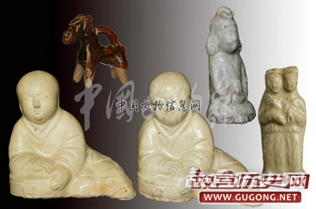 日常生活用品 出土遗物以陶器和瓷器为主。唐、五代时期瓷器主要器形有碗、钵、盘、罐、盒、执壶、研磨器等;陶器主要有盘、盆、碗等。宋金时期瓷器主要器形有碗、杯、盏、碟、盘、盆、罐、壶、瓶、盒、水盂、执壶、温碗、梅瓶、器盖、炉、枕、瓷玩具等,此外还发现有绞胎瓷器;这一时期的陶器主要有泥质灰陶盆、罐、釜、壶、扑满等。金元时期的瓷器器型包括碗、杯、盏、碟、盘、盆、罐、壶、瓶、炉、枕、灯、瓷玩具等;陶器主要为泥质灰陶盆、罐、壶等。明清时期的瓷器主要器形有碟、盘、碗、器盖、棋子等,青花瓷较多,兼有青釉、黑釉瓷;陶器包括泥质灰陶罐、盆等。