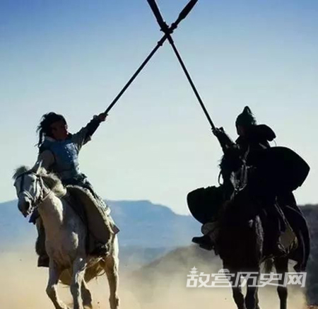 不过,在《三国演义》里被无视的“无名高手”绝不止臧霸一人,至少,阎行也可以算上一位。根据《魏略》记载,作为西凉军阀韩遂私人保镖的阎行,年轻时在当地已经有一定知名度。就在此时,处于人生青春正茂季节的阎行,做了一件个人职业生涯最为荡气回肠的事情。可遗憾的是,这件事情竟然几乎不为后人所熟知。事情大抵是这样的:西凉两军阀韩遂、马腾发生冲突,兵戎交接。马腾之子马超(前述的江湖榜单上排行第二,一吕二马三典韦)武力超群,一时间马部势力占了上风。阎行见状,策马扬鞭,自取马超。马超自恃力大,奋起相迎,未料阎行兵器一转,直取马超咽喉。马超大惊,急转马头,锋芒划喉而过(“遂与马腾相攻击,行尝刺超,矛折,因以折矛挝超项,几杀之《魏略》”)