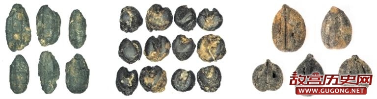 从左至右依次为:宝墩遗址出土的稻谷、粟和葡萄属(图片来源:成都文物考古研究院)