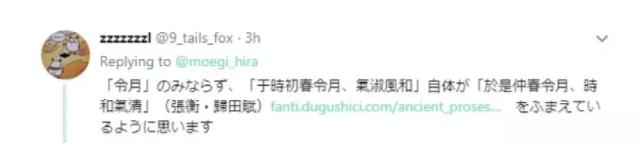 今天上午,当日本公布新年号时,小编心里就一震,这个年号在哪里看到过,而且在印象中就在前几天还阅读过,看日本方面的解释出处“初春‘令’月、气淑风‘和’”时,小编不自觉的念出了“仲春令月,时和气清”这一句诗句来,马上想到前几天小编正好阅读过的张衡一篇文章中正好有类似的诗句,而且这篇书籍正好摆在小编的书架上,马上回家翻看,果不其然,在张衡的《归田赋》找到了这一句,小编不自觉的吟诵起来:于是仲春令月,时和气清。原隰郁茂,百草滋荣。王雎鼓翼,鸧鹒哀鸣;交颈颉颃,关关嘤嘤。于焉逍遥,聊以娱情……而且小编发现,日本诗歌中出现的“初春令月、气淑风和”与“仲春令月,时和气清”的意境类似,可以想象,在张衡写完《归田赋》之后,这篇赋在日本很有影响,日本的这首诗歌应该受了张衡《归田赋》的影响,甚至于就是张衡这首《归田赋》的翻版。所以说日本新年号与其说是源自日本的《万叶集》,不如说是源自中国东汉文学家张衡的《归田赋》更确切。