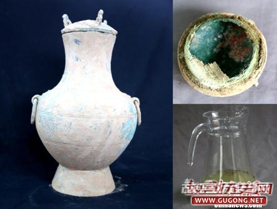 据介绍,此次出土铜壶的口部以条状物覆扎有粗布,密封性极好,因此得以保留总量约300毫升的近乳白色透明液体。检测后发现,液体中含有较高的羟脯氨酸、谷氨酸等氨基酸以及少量任二酸、月桂酸等脂肪酸等物质。其中,羟脯氨酸、谷氨酸等氨基酸的含量分别为4.83ug/g和2.40ug/g,属于酒类物质。