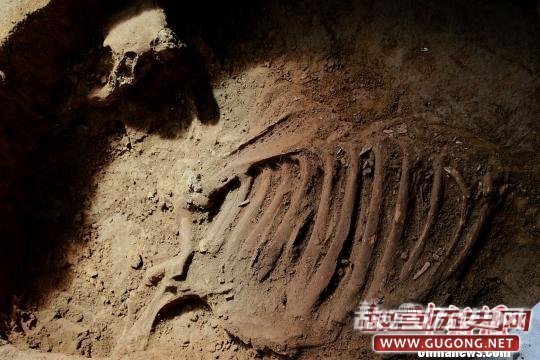 图为在祭祀坑中发现了较为完整的一架牛骨。 梁犇 摄