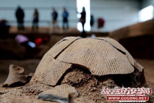图为考古人员将出土的陶片一件件编号登记。 梁犇 摄