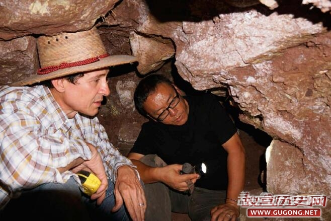 李新伟在8N-11贵族居址北侧建筑内的隧道里与洪都拉斯考古学家交流