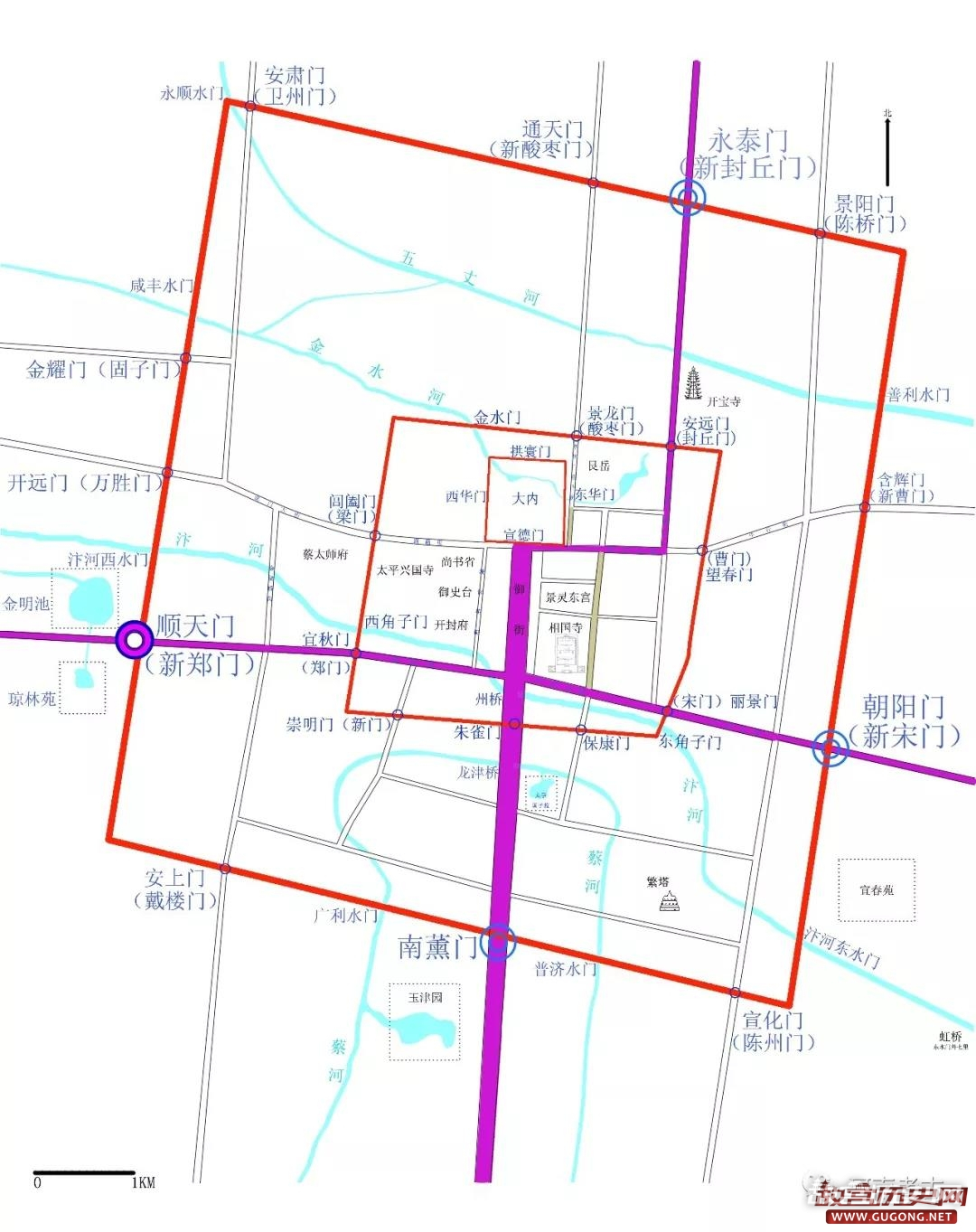 北宋东京城顺天门始建于五代后周周世宗显德二年(955年),时称“迎秋”门,宋太宗太平兴国四年(979年)改名“顺天”门,因向西直通郑州且与内城上的郑门相对,故又俗称“新郑门”。顺天门(新郑门)是位于宋东京城外城西墙上连接御道的正门,城外路南侧为琼林苑遗址,路北侧是金明池遗址。顺天门大街是西向巩义皇陵和西京洛阳的官道,也是宋与西夏互使的交流之路。顺天门(新郑门)沿用至金代,于公元1232年金哀宗弃城南逃后废弃。