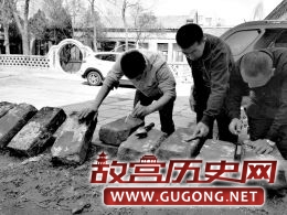 10日上午,记者在大同市文物局文物监察大队院内看到,文物工作人员正在对部分城砖进行清理保护。该砖形制为长方形青灰色条砖,大小不完全相同,长有39-42厘米、宽有20-21厘米、厚有10.5-12厘米,重量有17.8-19.5公斤。砖面上大部分有凸起的文字,仔细辨识,分别为“洪武伍年”“洪武肆年”“官×”“官造”“官自造”“中字号”“信字×”“玄字×”“四军号”“中所贰號”“馬军号”“右衞”等字样。