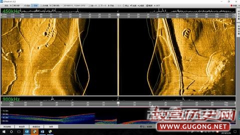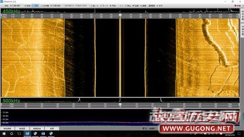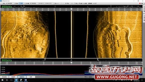 在做好前期走访的基础上,我们参阅了相关的方志、其他史籍,以及水文、移民等资料,以此确定了声呐船的具体走向和作业区域。经测试,该区域水深多在80—100米左右,将声呐放置在距水面30米深度,才能有效开展工作。本次收集到较多供以研判的声呐图,部分确定了镇区、民房、桥梁、水渠、道路、稻田的具体位置。但是,在使用水下机器人开展水下作业时,却遭遇到水下暗流的干扰,在4.4米处暗流直接掀翻机器人,且迅速将其冲向远端。在采取措施突破暗流层后,到达11米水深处,暗流更加湍急,身躯单薄的水下机器人终究未能突破暗流的肆虐,只能放弃拍摄。
