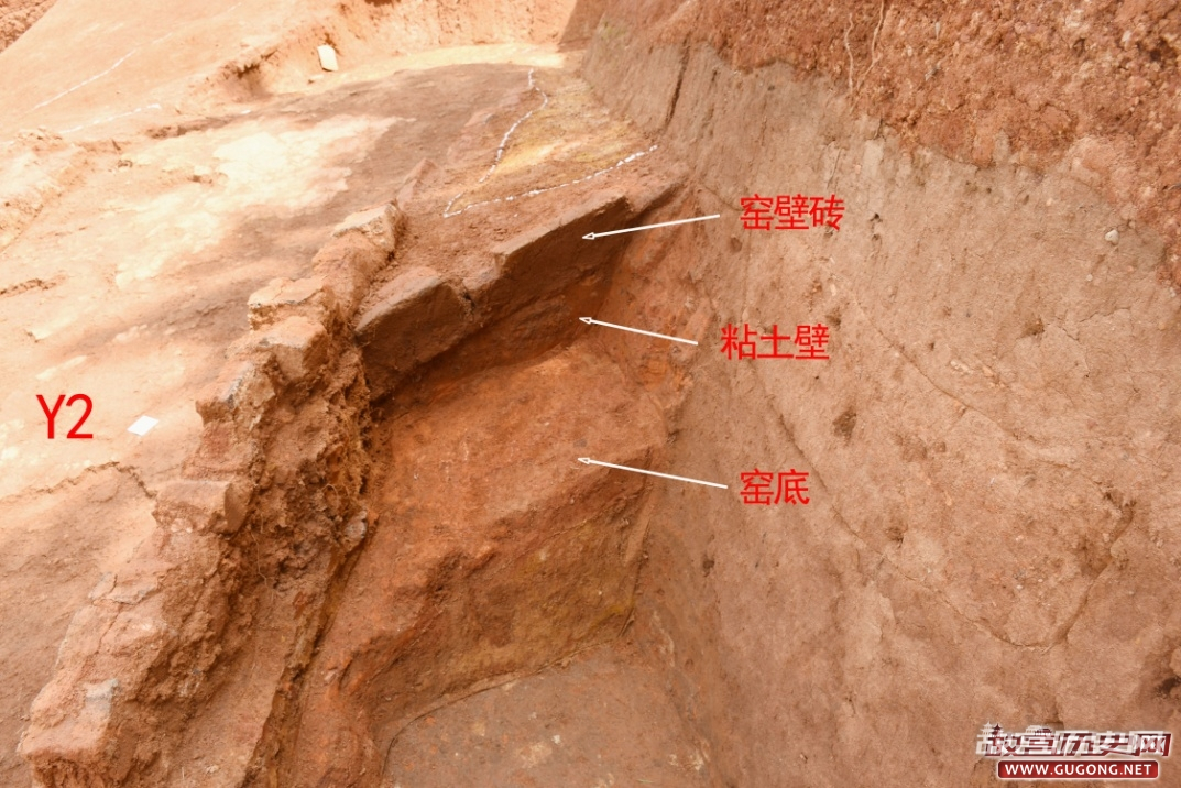 Y4窑壁由两部分构成,靠近窑底有15厘米高的粘土抹砌的内壁,其上竖砌土坯砖,窑顶不存(图八)。Y4窑砖的尺寸、窑炉的宽度均与Y1一致,窑内出土的瓷片也与Y1大体相同,年代应接近。