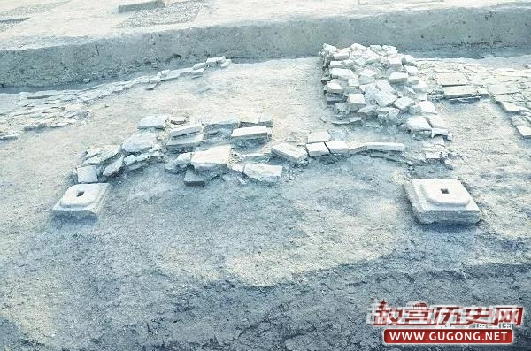 在廊庑址与各个建筑台基址之间,分布有砖砌的甬路相通。