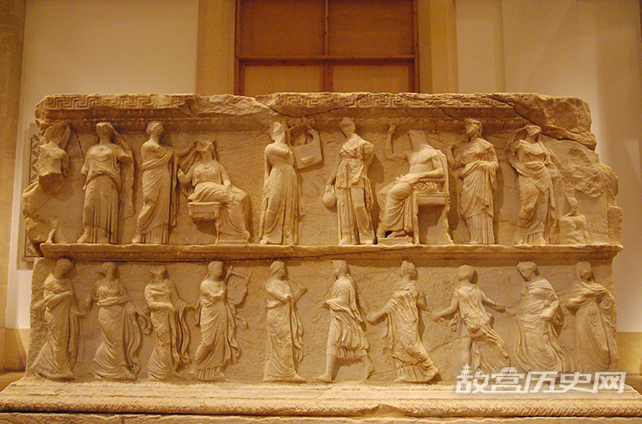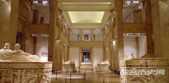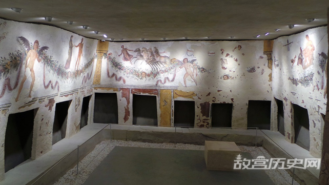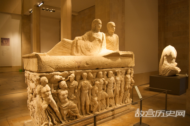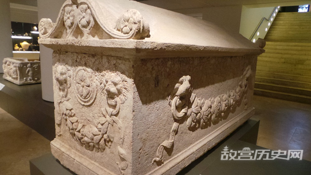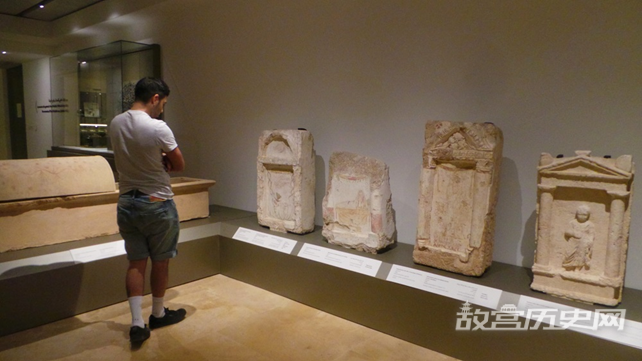 在展厅中,一座巨大的彩绘墓碑同样能吸引人们的注意。这座墓碑于1937年在黎巴嫩最南端的提尔地区发现,壁画场景均取材于希腊神话,可追溯到公元二世纪。