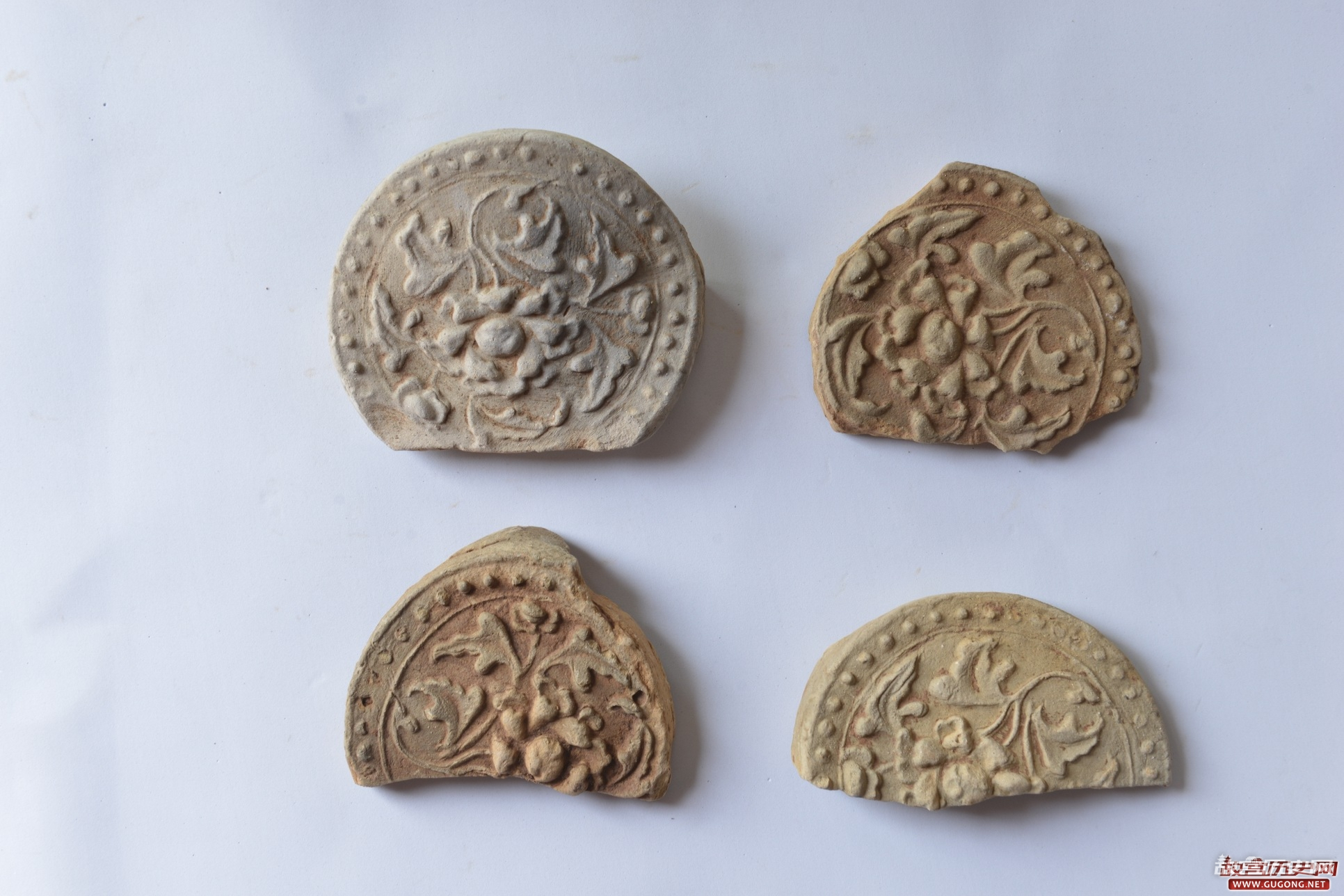 本次发掘出土遗物主要为大量的砖、瓦、瓦珰、滴水、吻兽、石础等建筑构件,同时还伴出较多的陶、瓷片及少量的铜器、铁器。砖可分为长方形和方形,或薄或厚;瓦有筒瓦及板瓦两类。瓦珰和滴水多饰有卷草纹、螺旋纹及云纹等纹饰。出土铁器多为小刀类工具。出土的建筑构件既融合了汉文化的诸多因素,同时亦有本地区的民族特点。