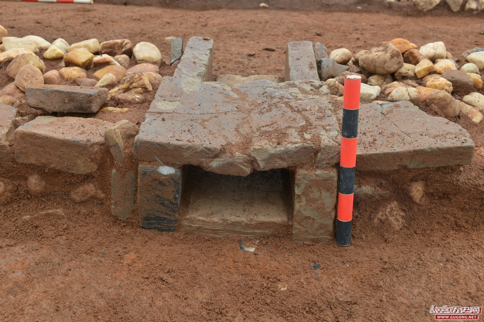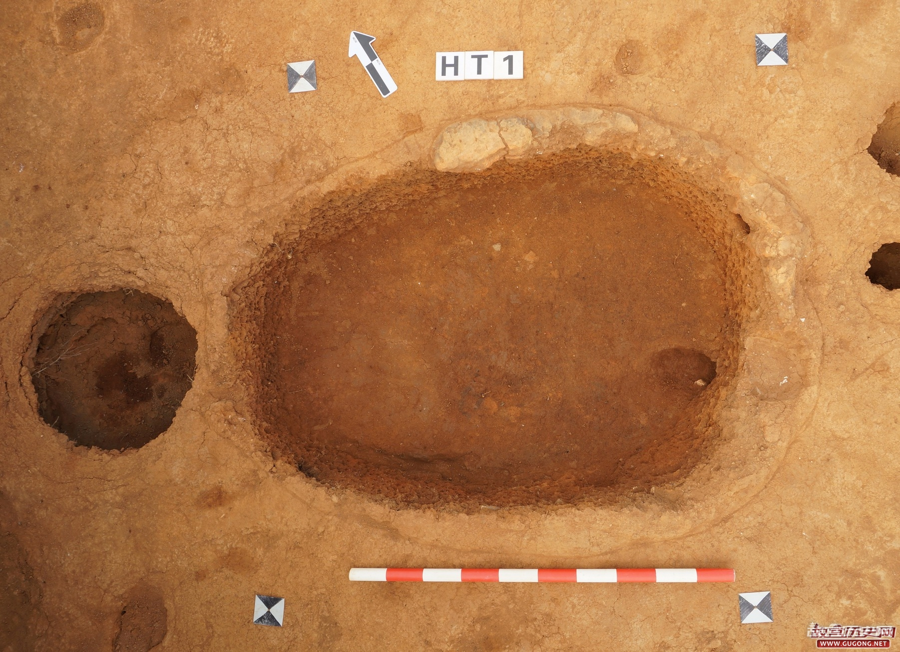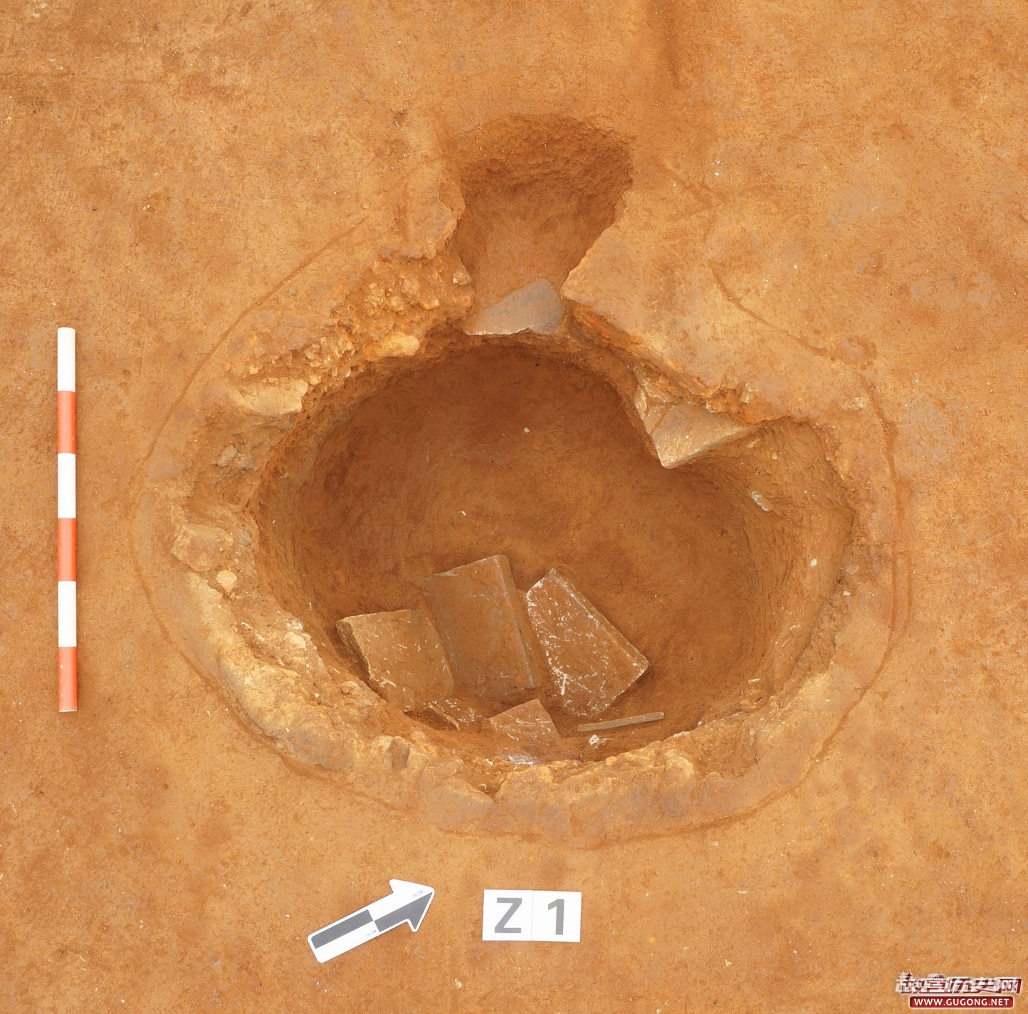 葫芦形窑址揭露4座。由南向北呈一字排列。2号窑址保存相对完整,一端略大,另一端略小,较大一端口部有红褐色烧结层。窑址西部有一条浅沟环绕,东南部为砖砌水池。