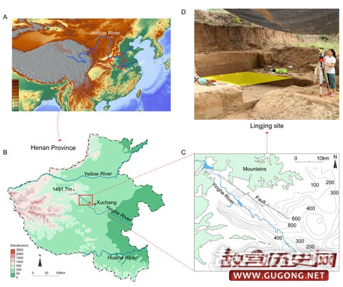 “许昌人”遗址位于河南省许昌市灵井镇,是一处由泉水形成的水塘或小型湖泊(滨湖相)遗址。遗址出土的两具古人类头骨化石兼具中更新世古老型人类、早期现代人与尼安德特人的特征,光释光测年结果为距今约12.5-10.5万年,相关成果于2017年3月发表在美国Science杂志。但是,在该遗址的沉积环境及形成过程研究方面,尚未开展详细的工作。为解决这一问题,2017年5-7月中国科学院古脊椎动物与古人类研究所与河南省文物考古研究院组成联合考古队,对该遗址进行了再次发掘。