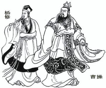 附:罗贯中《曹操与杨修》操屯兵日久,欲要进兵,又被马超拒守;欲收兵回,又恐被蜀兵耻笑:心中犹豫不决。适庖官进鸡汤。操见碗中有鸡肋,因而有感于怀。正沉吟间,夏侯惇入帐,禀请夜间口号。操随口曰:“鸡肋!鸡肋!” 传令众官,都称“鸡肋”。行军主簿杨修,见传“鸡肋”二字,便教随行军士,各收拾行装,准备归程。有人报知夏侯惇。 大惊,遂请杨修至帐中问曰:“公何收拾行装?”修曰:“以今夜号令,便知魏王不日将退兵归也。鸡肋者,食之无肉,弃之有味。今进不能胜,退恐人笑,在此无益,不如早归:来日魏王必班师矣。故先收拾行装,免得临行慌乱。”夏侯惇曰:“公真知魏王肺腑也。”遂亦收拾行装。于是寨中诸将,无不准备归计。当夜曹操心乱,不能稳睡,遂手提钢斧,绕寨私行。只见夏侯惇寨内军士,各准备行装。操大惊,急回帐召 问其故。 曰:“主簿杨德祖先知大王欲归之意。”操唤杨修问之,修以鸡肋之意对。操大怒曰:“汝怎敢造言,乱我军心!”喝刀斧手推出斩之,将首级号令于辕门外。原来杨修为人恃才放旷,数犯曹操之忌。操尝造花园一所;造成,操往观之,不置褒贬,只取笔于门上书一“活”字而去。人皆不晓其意。修曰:“‘门’内添‘活’字,乃‘阔’字也。丞相嫌园门阔耳。”于是再筑墙围。改造停当,又请操观之。操大喜,问曰:“谁知吾意?”左右曰:“杨修也。”操虽称美,心甚忌之。又一日,塞北送酥一盒至。操自写“一盒酥”三字于盒上,置之案头。修入见之,竟取匙与众分食讫。操问其故。修答曰:“盒上明书‘一人一口酥’,岂敢违丞相之命乎?”操虽喜笑,而心恶之。操恐人暗中谋害已身,常分付左右:“吾梦中好杀人;凡吾睡着,汝等切勿近前。”一日昼寝帐中,落被于地。一近侍慌取复盖。操跃起拔剑斩之,复上床睡。半晌而起,佯惊问:“何人杀吾近侍?”众以实对。操痛哭,命厚葬之。人皆以为操果梦中杀人。惟修知其意,临葬时指而叹曰:“丞相非在梦中,君乃在梦中耳!”操闻而愈恶之。操第三子曹植,爱修之才,常邀修谈论,终夜不息。操与众商议,欲立植为世子。曹丕知之,密请朝歌长吴质入内府商议;因恐有人知觉,乃用大簏藏吴质于中,只说是绢匹在内,载入府中。修知其事,迳来告操。操令人于丕府门伺察之。丕慌告吴质。质曰:“无忧也。明日用大簏装绢,再入以惑之。”丕知其言,以大簏载绢入。使者搜看簏中,果绢也。回报曹操。操因疑修谮害曹丕,愈恶之。操欲试曹丕、曹植之才干。一日,令各出邺城门;却密使人分付门吏,令勿放出。曹丕先至,门吏阴之,丕只得退回。植闻之,问于修。修曰:“君奉王命而出,如有阻当者,竟斩之可也。”植然其言。及至门,门吏阻住。植叱曰:“吾奉王命,谁敢阻当!”立斩之。于是曹操以植为能。后有人告操曰:“此乃杨修之所教也。”操大怒,因此亦不喜植。修又尝为曹植作答教十余条。但操有问,植即依条答之。操每以军国之事问植,植对答如流。操心中甚疑。后曹丕暗买植左右,偷答教来告操。操见了大怒曰:“匹夫安敢欺我耶!”此时已有杀修之心。今乃借惑乱军心之罪杀之。修死年三十四岁。曹操既杀杨修,佯怒夏侯惇?,亦欲斩之。众官告免。操乃叱退夏侯惇?,下令来日进兵。次日,兵出斜谷界口,前面一军相迎,为首大将乃魏延也。操招魏延归降,延大骂。操令庞德出战。二将正斗间,曹寨内火起。人报马超劫了中后二寨。操拔剑在手曰:“诸将退后者斩!”众将努力向前。魏延诈败而走,操方麾军回战马超,自立马于高阜处,看两军争战。忽一彪军撞至面前,大叫:“魏延在此!”拈弓搭箭,射中曹操,操翻身落马。延弃弓绰刀,骤马上山坡来杀曹操。斜刺里闪出一将,大叫:“休伤吾主!”视之,乃庞德也。德奋力向前,战退魏延,保操前行。马超已退。操带伤归寨:原来被魏延射中人中,折却门牙两个,急令医士调治。方忆杨修之言,随将修尸收回厚葬,就令班师。