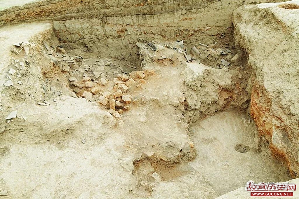 在城西清理发掘墓葬10座、殉马坑1座、陶窑1处和清代房址1座。墓葬形制包括竖穴土坑墓、竖穴偏室墓和竖穴二层台墓,其中竖穴土坑墓6座,竖穴偏室墓3座,竖穴二层台墓1座。墓主人皆为单人仰身直肢葬,头向大多朝西,葬具以槽形木棺为主,竖穴二层台墓内的葬具则为榫卯结构的木棺和木椁。随葬品以陶器和铜器为大宗,另有五铢钱币2枚。陶器皆为轮制,素面,部分表面有戳刺纹或附加堆纹。器表有明显的烟炱痕迹,均应为实用器。铜器以戒指、耳环、铜镯、带扣等饰件为主,锈蚀严重。个别墓主人头部随葬羊骨。陶窖由前室、火门、火膛、窖室和排烟设施五部分组成,窖室内清理出土板瓦、筒瓦、瓦当、方砖、陶器等遗物,其中板瓦、筒瓦、瓦当等遗物的制作工艺和制作图案与城址内出土同类器物一致。