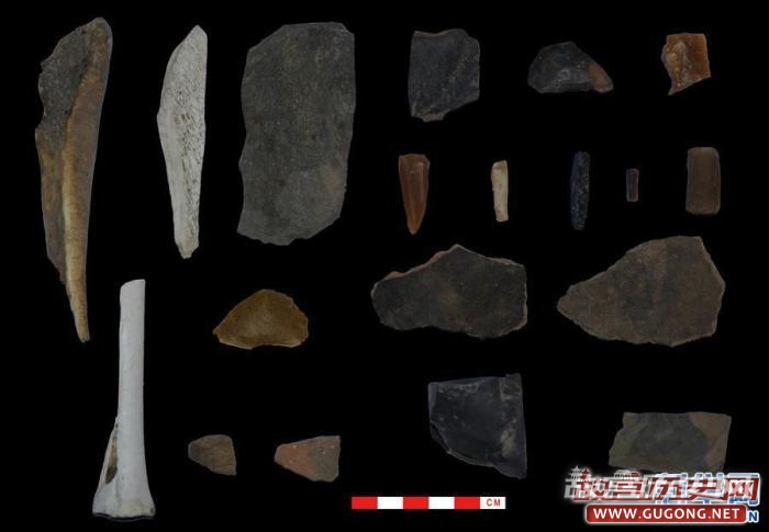 本次发掘出土有典型的细石核、细石叶和其他加工精致的石器;细石核的类型以锥形和半锥形石核为主;细石叶窄而长,十分规整;石器包括加工细致的边刮器和端刮器;石料以优质的燧石、玛瑙和黑曜石为主。同时伴随有红褐色夹砂陶片和黑色泥质陶片出土,不见完整器物。