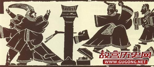 公元前227年,强秦先后灭亡韩国和赵国,燕国成了秦军下一个目标,太子丹知道燕兵不可能抵御秦师,于是孤注一掷,想刺杀秦王。刺客荆轲提着秦国叛将樊於期的人头和督亢地图来到了秦都,经严格检查后,荆轲见到了秦王嬴政,他展开督亢地图,图穷匕首见,毫无防备的秦国君臣被这突如其来的变故吓呆了,秦国规定不得带兵器见君王,大臣们只能看着干着急。嬴政急忙绕着柱子跑,腰中宝剑因太长,一时拔不出,就在荆轲快要追上时,秦王侍医夏无且将药囊当做武器丢向荆轲,得到这片刻时间,秦王把长剑背负拔出,击杀了荆轲。