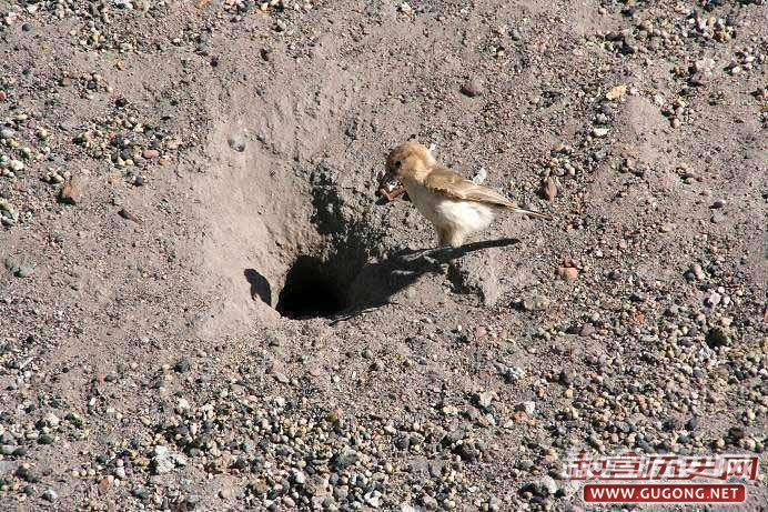 关于鼠兔,我们在考察途中发现一些十分奇怪的现象,引起我们很大的兴趣。那就是偶尔可以看到一些鸟类(主要是一些适于高寒环境的褐背拟地鸦和雪雀等少数高原鸟类)常在一些鼠兔的洞穴口附近活动,有时还看到个别鸟雀在洞穴中进进出出,似乎是与鼠兔同居一室。其实,这种奇异现象很早就引起人们的注意了,这是否就是我国古代一些书籍中所记载的“鸟鼠同穴”共居现象?在流传至今的古书中,如公元前四五百年孔子编修的《尚书》中的《禹贡》、西汉司马迁编写的《史记》中的《夏本记》及成书于战国末年和秦汉过渡时期的《山海经》中的《西山经》等书中都曾提到过“鸟鼠同穴”。在中国文献记载中最早的名山之一就是“鸟鼠山”(《山海经》中称“鸟鼠同穴山”),它位于甘肃省渭源县西南18公里,是西秦岭山脉北支的一部分,是渭河上游北源与洮河支流东峪沟的分水岭,海拔2609米。虽然在这些古书中都曾提及鸟鼠同穴之事,但都没有进一步详细述说其内容和缘由,但“鸟鼠同穴”这一自然界的奇怪现象显然很早以前就已被人们注意到了。后来在汉代的《尔雅·释鸟篇》中关于鸟鼠同穴有过略为进一步的简述:“其鸟为鵌(音念作徒tu-作者注),其鼠为鼵(音念作突tu-作者注)。”据后来东晋的郭璞在《尔雅注》中解释:“鵌似鵽(音念作多duo, 是一种出没于北方沙漠地带、大小如家鸽般、名叫鵽鸠的雉类)而小,黄黑色,穴入地三四尺之,鼠在内、鸟在外”;“鼵如人家鼠而尾短。”这种注解明白地告诉了我们:有一种叫鵌的小鸟雀入住在三四尺深的一种叫鼵的“鼠洞”里,而且鸟雀住在洞前,“鼠”住在洞内深处,此即“鸟鼠同穴”之说。