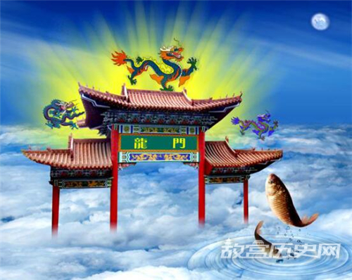 中国古代传说只要鲤鱼能够跳过龙门 ,就会变化成为真龙。还有传说龙门为应龙开辟,有诗赋赞曰:“阙之所成兮,得应龙之伟力”,阙即伊阙。当鲤鱼跃龙门时,就会有应龙盘旋上空。比喻中举、升官等飞黄腾达之事。也比喻逆流前进,奋发向上。