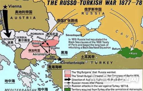 面对这种局势,欧洲列强中的俄、奥、英三国表示了自己的特别关注。尤其是俄罗斯,它认为,1853~1856年的克里米亚战争使自己在巴尔干地区既丢面子又丧失了威信和影响,它需要寻找一个机会重新回到巴尔干,恢复原有的一切。更为重要的是,俄罗斯想通过控制巴尔干进而控制由地中海进入黑海的咽喉博斯普鲁斯海峡,以便打通它谋求已久的在西南方面的唯一出海口。因此,它对土耳其局势的恶化幸灾乐祸,并积极地加以介入。