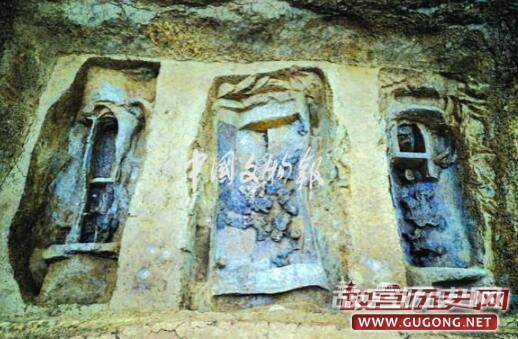 已发掘的M202、M155和M112开口面积分别为17.3、14和22.4平方米,是全国范围内迄今发现的同时期面积较大的史前墓葬。M202是一座同穴双“室”合葬墓。长方形竖穴土坑,开口长4.38米,宽3.95米,墓底距墓口2.5米。东、北侧有生土二层台。墓壁规整,局部保存明显的工具痕迹。墓底有两个平行的南北向墓室,中间以宽0.5米,高0.8米的生土梁相隔。生土梁顶部距墓口深1.7米。东、西两墓室均发现直壁弧底独木棺,棺内外均随葬六十余件磨光黑陶,同时在棺外发现漆盘、竹编器物等。墓葬填土随葬瓮、罐、缸等数件大型带盖容器。根据发掘时预留的填土堆积剖面观察,这些器物一般位于不同层填土的“界面”,应是伴随填土的逐层倾倒先后分别放置的。M155亦为南北向同穴双室墓,墓圹长4.68米、宽3.2米,中间留有生土隔梁,将墓葬分为东、西两室。独木棺保存完整、结构清晰,东室棺内、外随葬漆器和大量磨光黑陶,并在墓主右股骨附近发现玉钺及红色漆柄痕迹。钺长25厘米、刃宽13厘米,柄痕长度为60厘米。