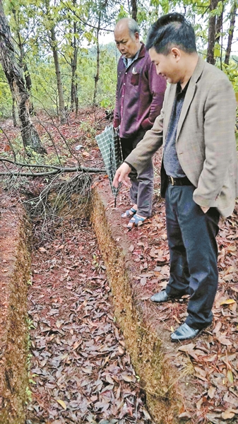 大顶山古墓群考古发掘现场遗留的探沟。