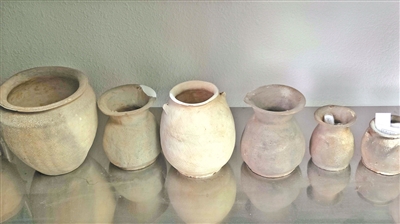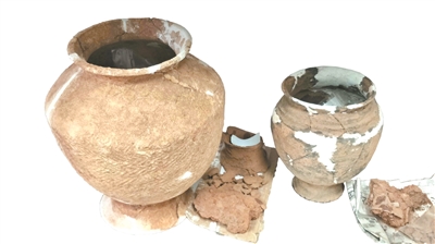 大顶山古墓群遗址出土的各类陶罐。