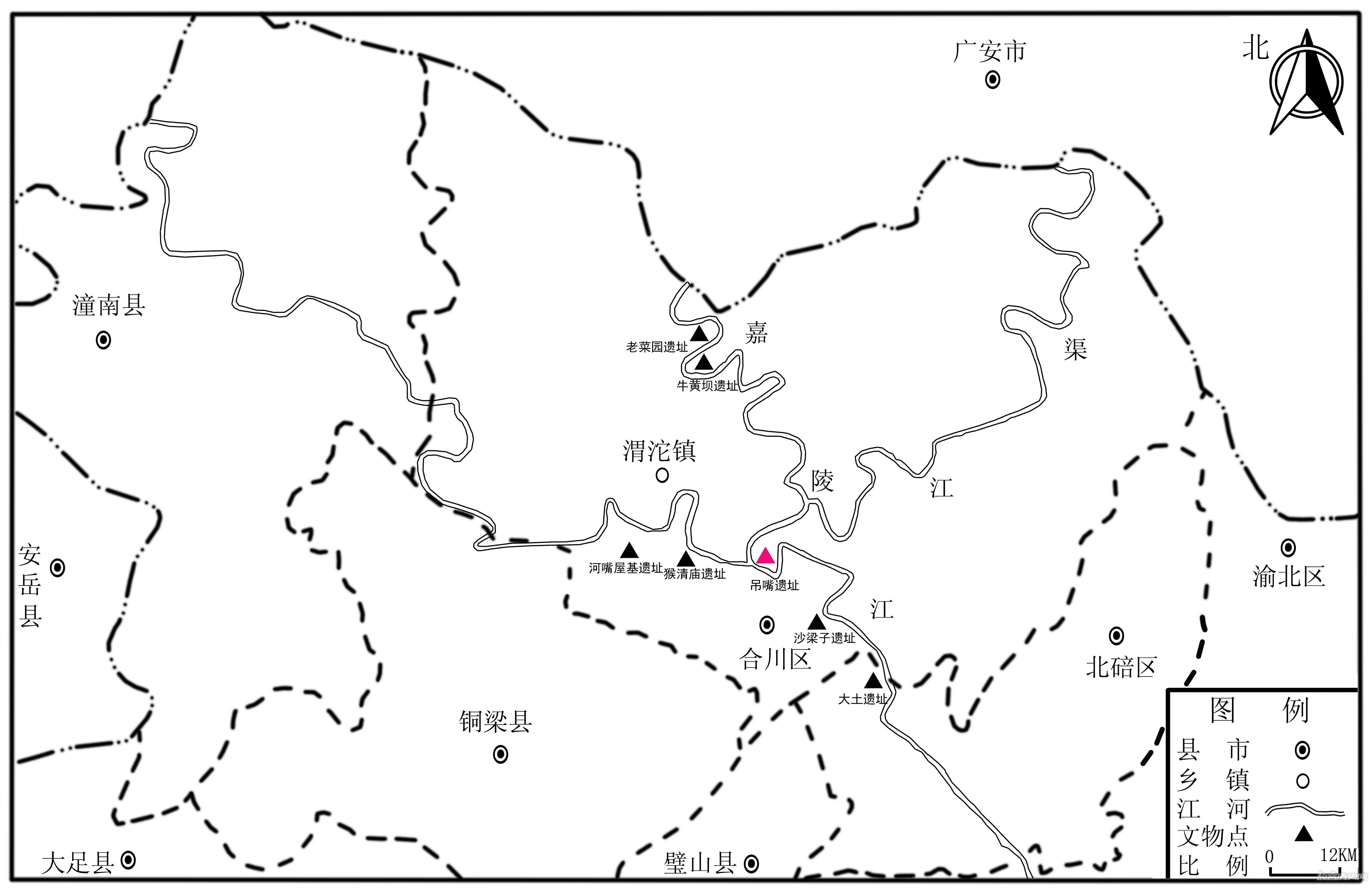 嘉陵江古称阆水、渝水,是长江流域面积最大的支流,北起秦、巴山地,自北向南纵贯四川盆地中部。嘉陵江下游主要指合川至朝天门河口,合川为嘉陵江、涪江、渠江“三江汇合”之地,是川西盆地与川东谷地古代文化交流的重要通道。嘉陵江下游的考古工作起步相对较晚(2004年以前仅开展了零星的考古发掘工作),2004年开始较大规模的考古发掘工作以来,先后发现了合川牛黄坝、老菜园、河嘴屋基、猴清庙,北碚大土等一批遗址,这一区域的新石器时期文化面貌逐渐清晰。