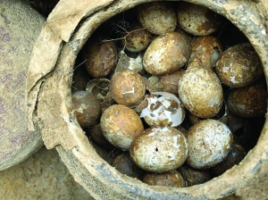 为什么要把鸡蛋放进墓中?林留根说,因为鸡蛋可以孵出小鸡,它们象征了生生不息,子孙绵延。同时,也不排除是墓主的个人喜好,“或许,墓主生前就是一个爱吃鸡蛋的人。在古人的观念中,生前享受什么,死后也要同样享用,所以,墓主死后,后人把这罐鸡蛋埋了进去。”