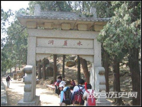 (一)水帘洞:《西游记》第一回写石猴自称“东胜神洲傲来国花果山水帘洞人氏”,并写及水帘洞云:“你看他瞑目蹲身,将身一纵,径跳入瀑布泉中,忽睁睛抬头观看,那里边却无水无波,明明朗朗的一架桥梁。他住了身,定了神,仔细再看,原来是座铁板桥……”明人高诲《游泰山记》云:“稍前为水帘洞泉,……下有小石桥,通泉于溪。”又据《岱史》载:“水帘洞在高老桥上。”又明人王在晋《东巡登泰山记》云:“桥横水帘洞。”都指出泰山水帘洞为瀑布下有桥之洞,与上引《西游记》所绘建构颇相一致。又原属泰安今归肥城的原山东省太西地区岈山村山东面正是曾有一座“铁板桥”。