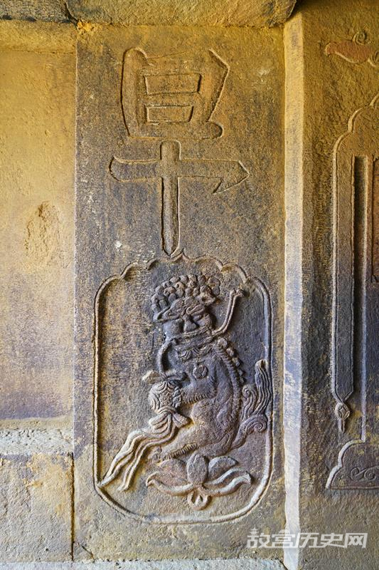 来游关1号墓墓室中发现有“早”“登”“觉”“路”等题字,常见于敦煌发愿文与题记中。棺室两壁的狮子、六牙象在佛教中往往是释迦牟尼佛的左、右胁侍—文殊菩萨和普贤菩萨各自的坐骑,靠近后龛处浮雕的引魂幡一般认为是佛教所创为死者引路的丧仪旗幡。左侧引魂幡所书“西方”指西方净土,意佛教所谓西方极乐世界;右侧引魂幡所书“受生”同“寿生”,源于《佛说受生经》。整组画像及题记反映了阿弥陀佛接引亡者往生西方极乐世界,具有鲜明的佛教净土宗特色。“西方二路”“認意受生”等词组未见于佛教经籍及其他传世文献中,其发现是对佛教文献的重要补充。