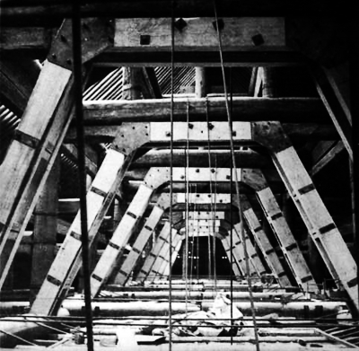 “按照当时普遍的修缮方法,这需要将屋顶的梁架一次拆下,更换承重梁。”然而,国家经济正处于困难时期,故宫人员缩减,材料与劳动力都处于短缺的状况。“在这么个条件下,光是找到这么大的料就很困难,要‘落架大修’从现实条件上说可谓困难重重。”于是,故宫检查组的工作人员经过商讨决定先临时支顶维持安全,并向国家文物局上报了一套新的保护方案:加固梁架。“在不动原来梁架的基础之上,用新的材料将五架梁‘顶’起来,把受力直接传导到下层梁架,使承重的压力不集中在劈裂的五架梁身上。”这是一个非常聪明、新颖的方法,不仅对建筑结构扰动较小,同时耗费较少,在经济上也尚属可行。