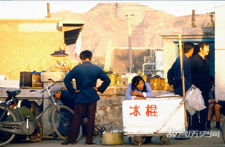 图为1983年北京街头的一个做冷饮的小生意人。一辆老旧简单的手推车上放了一个大箱子,外头打上了两个红色显眼的冷饮大字。换作现在,基本都是冰柜了。