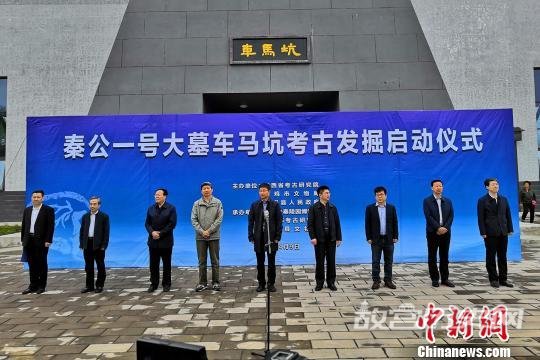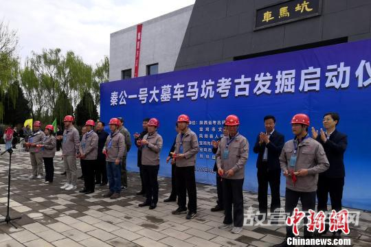 秦公一号大墓车马坑考古发掘启动仪式9日在位于陕西凤翔县的宝鸡先秦陵园博物馆举行。