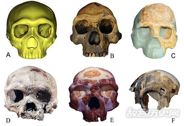 B:周口店直立人;C:南京直立人 D:大荔;E:金牛山;F:马坝 (图片来自:吴秀杰)