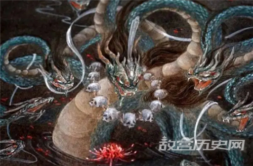 相繇,又称相柳,上古时代中国神话传说中的凶神,共工的臣属,出自《山海经·海外北经》:“蛇身九头,食人无数,所到之处,尽成泽国”。