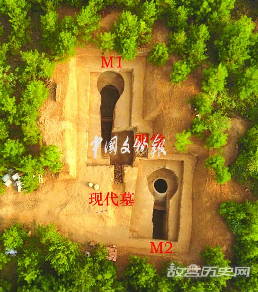 本次清理的两座墓葬南北错列而置,中间还有一座明堂,墓葬分别编号为M1、M2。